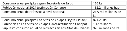 Como puede apreciarse, la supuesta cifra de 8.25 litros de consumo personal en Chiapas no